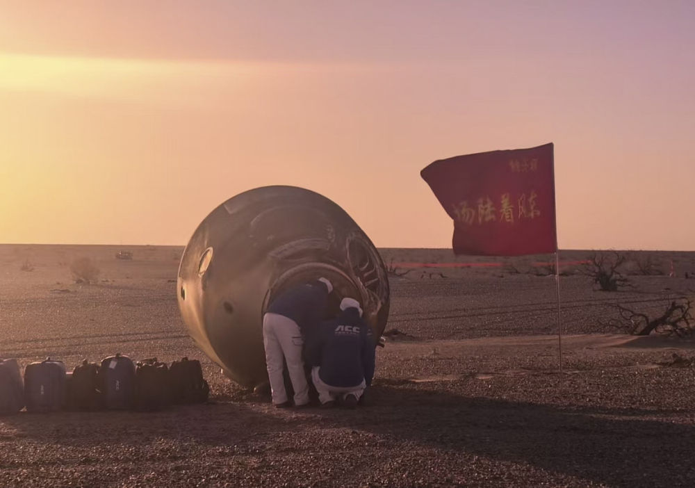 ↑11月14日,载着神舟二十号航天员乘组的神舟二十一号载人飞船前往舱正在春风着陆场成功着陆。记者李志鹏 摄!